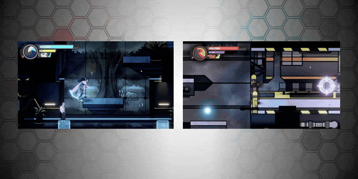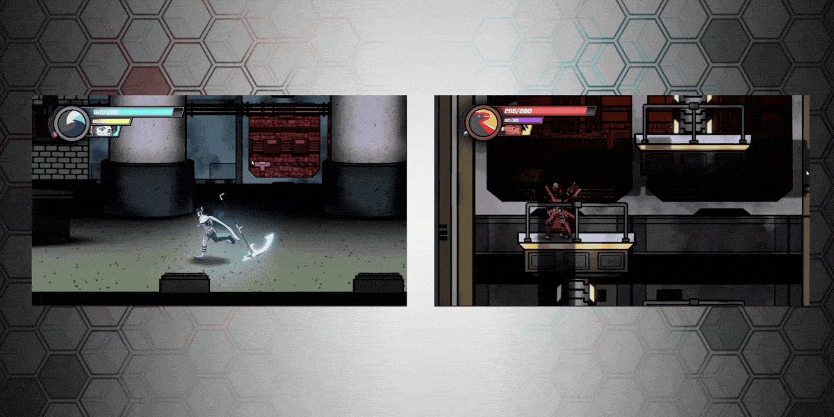 Phaze Shift is a “Metroidvania” where you play as two different characters, Aqua and Redd who play very distinctly from one another. Switch between the scythe-wielding, melee combatant, Aqua, or the long range, weapons specialist, Redd!